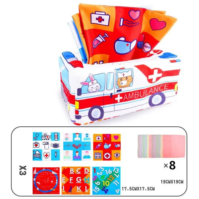- Montessori Toys Magic Tissue Box Baby Toys 6-12 Months Infant Pull Along Tissue Box Baby Games Early Development Sensory Toys