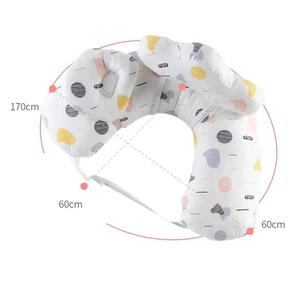 الوسادة تأتي بمقاس 60×60 سم، حيث يوفر مساحة كافية لدعم الطفل وتكييفها بسهولة حسب احتياجات الرضاعة المختلفة.