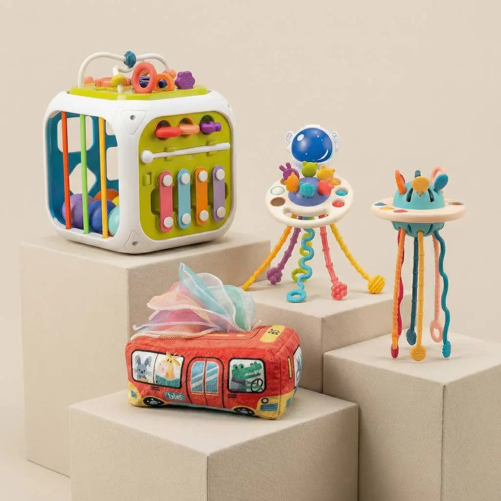 - - عدد 2 لعبة سحب الحبل - مكعب مونتيسوري للنشاط الحسي - علبة المناديل القماشية